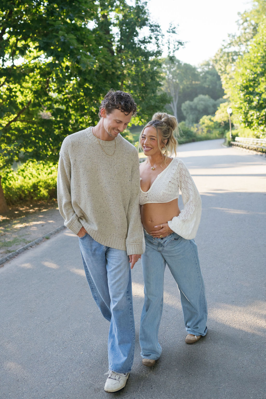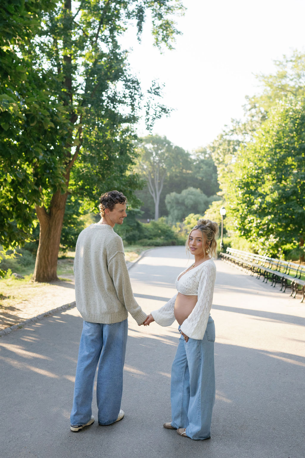 Delaney is a well-known influencer with an audience that follows her life closely, so she is no stranger to being seen. However, they wanted this moment to be only theirs for just a little while longer. To preserve that intimacy, we met before the sun rose and the city woke. In the stillness of early morning, Central Park felt softer, more private—like it was joining in with us on the secret. It allowed us to document this fleeting, tender season of their lives in a way that felt both intentional and protected. There was something almost sacred about it—capturing their growing family in the quiet hush of dawn, all while the world was still unaware of the beautiful news they were carrying.